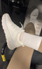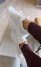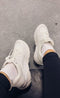 Quem não ama tênis brancos? Adoro que eles sejam completamente brancos, elegantes e tenham um pouco de salto. 👌🏼 Eles são um pouco largos no tamanho, então talvez seja melhor pegar uma numeração menor se você estiver em dúvida entre tamanhos. 😄