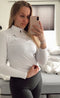Sou tão fã do decote alto, simplesmente funciona. A qualidade é deliciosa e o tamanho é bom - talvez um pouco pequeno, mas não muito. No entanto, o branco é um pouco transparente.