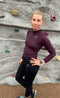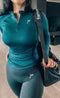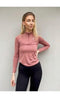 Este é o meu favorito absoluto entre as de mangas longas. É um material elástico e sedoso, e se sente muito bem em situações ativas. Quando você sua, absorve bem! Eu uso S e tenho estas em 2 cores, ambas em S!