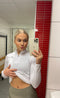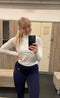Eu adoro o ajuste deste cropped top. Parece pequeno no tamanho. Sinta-se à vontade para pegar 1 tamanho maior do que você normalmente usa.