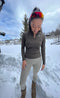 Ótimo suéter que combina com quase tudo. Ajuste justo, perfeito para mim, que sou pequena. Ponto positivo por ser um pouco mais curto nas mangas e no comprimento do que muitas camisetas de manga longa que já experimentei. Uso para montar e fica tão bom tanto com calças de equitação quanto com leggings de treino.