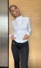 Estou muito satisfeita com esta blusa! Posso dizer que é a minha favorita :) Ela se ajusta ao corpo e ressalta como sou magra na cintura, o que eu adoro! É realmente elástica e confortável. 10/10 ✅