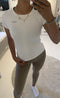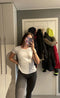 Tecido delicioso na camiseta! Gosto que seja um pouco largo e cropped, combina bem com leggings de treino e calças de cintura alta🤩 tenho esta no tamanho L.