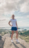 Esta camiseta é tão leve, suave e confortável de usar! Tem um pouco mais de comprimento do que a camiseta Essential, mas dá para puxar um pouco para cima. Acho que se ajusta muito bem ao corpo. Estou usando tamanho S.