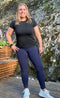 Camiseta incrivelmente fina, leve, suave e elástica, que é adequada para treinos e passeios. É bastante longa, mas se ajusta bem se você quiser que seja mais curta. Respira bem e é confortável e bonita de usar. Como é tão elástica, escolhi o tamanho XS e estou muito satisfeita com isso.