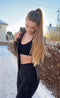 esta blusa é completamente perfeita para o dia a dia e para o yoga. Eu a tenho no tamanho M, provavelmente poderia ter no S também. Boa flexibilidade no tecido, se você tem seios grandes mas cintura fina, eu recomendaria S em vez de M.